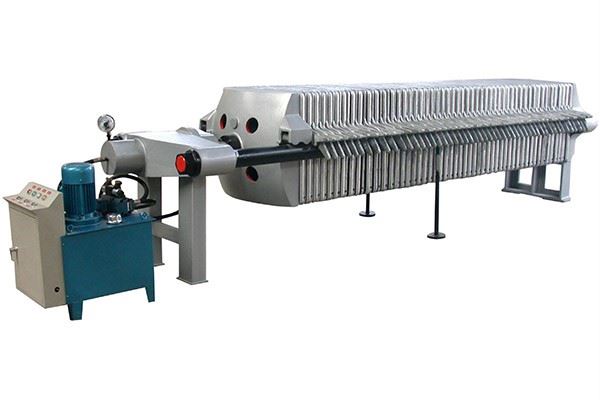 隔膜壓濾機(jī),隔膜壓榨壓濾機(jī)由隔膜板和廂式濾板排列組成濾室,在輸料泵的壓力作用下將漿料輸入濾室,通過過濾介質(zhì)(濾布)將濾料中的固體和液體分離,當(dāng)漿料中的固體形成餅后,再向隔膜通入空氣,對濾室內(nèi)的固體充分壓榨,降低含水率。對于粘性物料的過濾及對含水率要求較高的用戶,此機(jī)更有其獨特的特性。